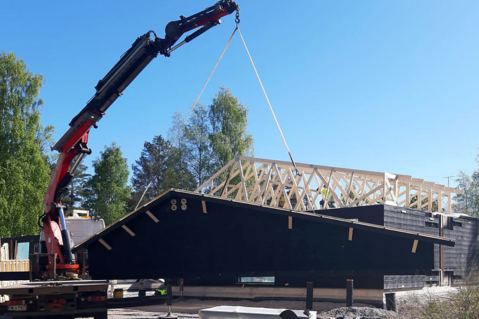 Talopaketti vesikattoasennuksella sisältää valitun vesikatteen asennettuna, räystäiden ja otsalautojen osalta viimeisteltynä.