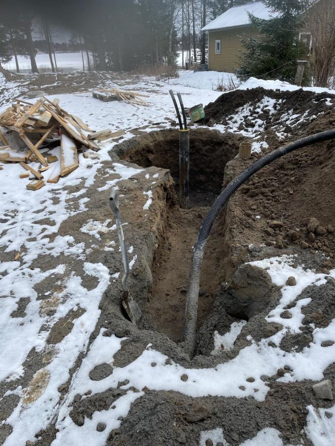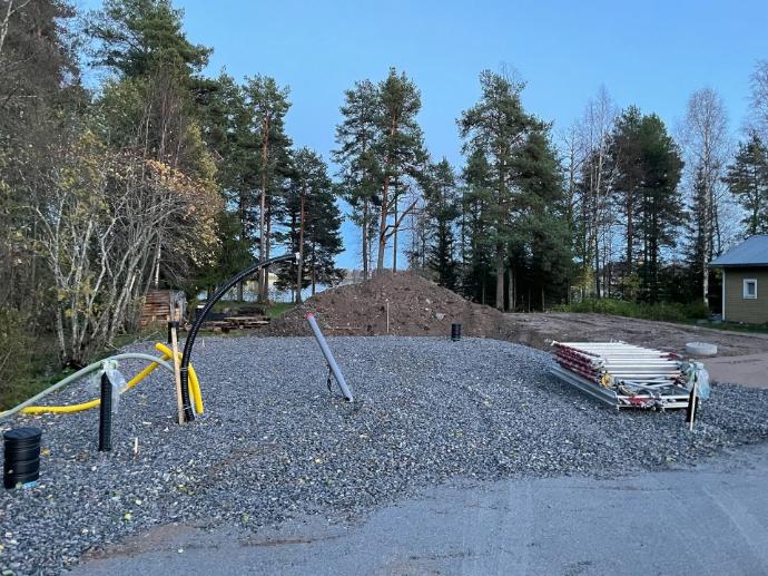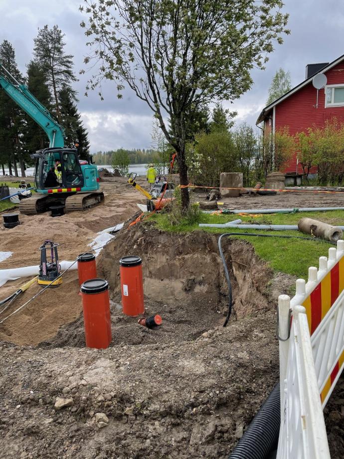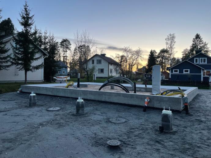 Pohjatyöt ja maahan tulevat asennukset työn alla.