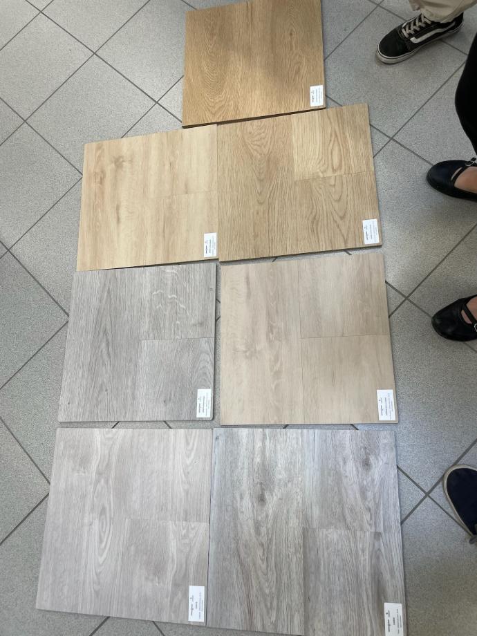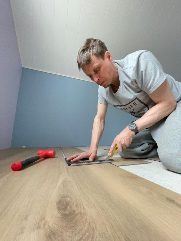 Betonin kuivuttua riittävästi päästiin asentamaan vinyylilankkulattiaa.