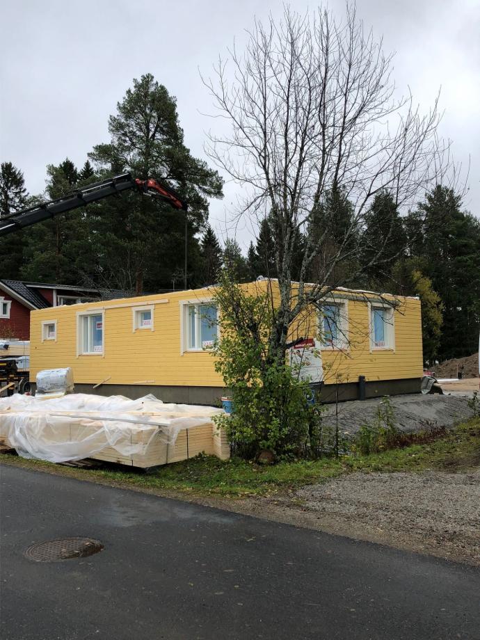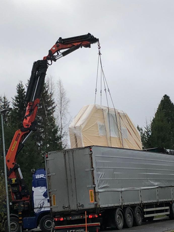 Lehdet olivat jo pudonneet kun talopaketti saapui syksyllä 2023.