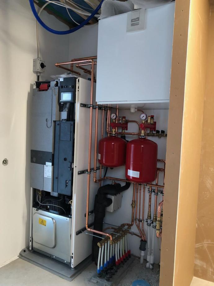 Teknisen tilan asennukset etenivät ja maalämpöpumppu saatiin myös kytkettyä.