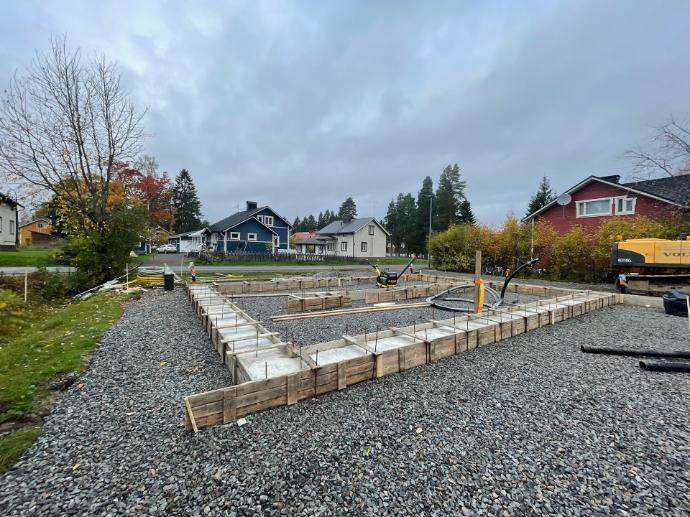 Sokkelin valu käynnissä.
