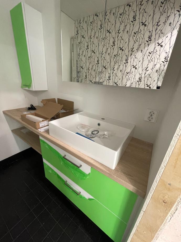 WC:n kalusteet pääosin asennettuna.