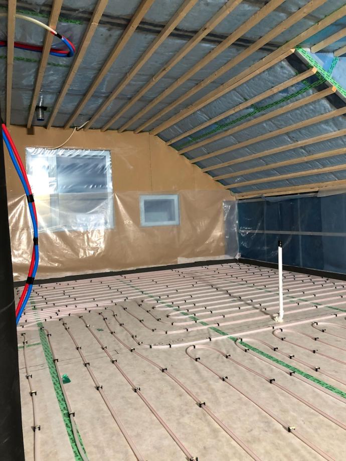 Yläkerran lattialämmitysputket asennettuna.