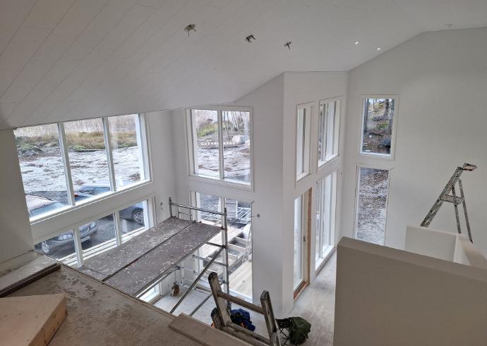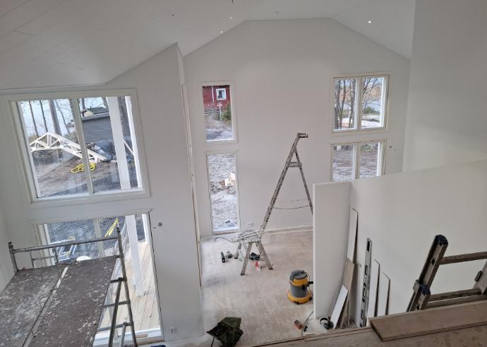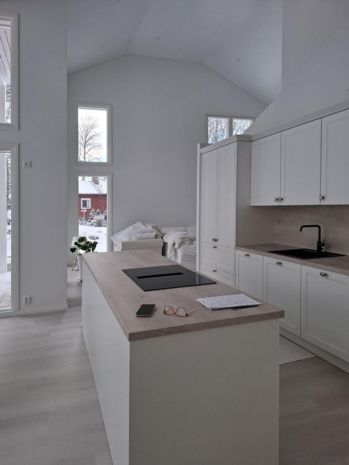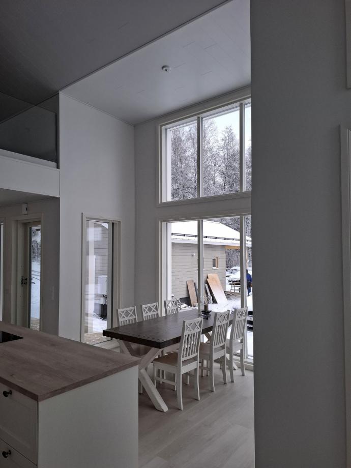 3.12. 2024 koitti vihdoin kauan odotettu päivä ja käyttöönottotarkastus. Sisätiloja hallitsevat vaaleat, hillityt sävyt. Kohteessa on ylellisen avarat ja valoisat tilat - tilaa ja toimivuutta löytyy runsaasti. Ympäröivä luonto, järvimaisema ja eri vuodenajat näkyvät upeasti korkeista ikkunoista.