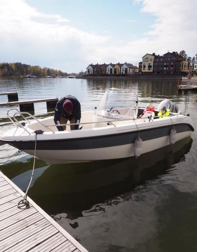 Perhe harrastaa veneilyä.