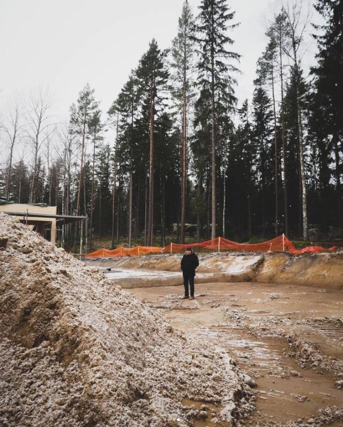 Tontilla alkoi toden teolla tapahtumaan, kun kaivinkone saapui ja maa-ainesten kuljetus alkoi. Maarakennuksesta vastasi JaMaRak Oy.