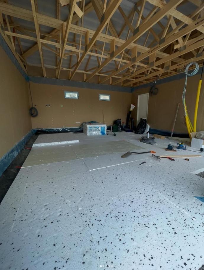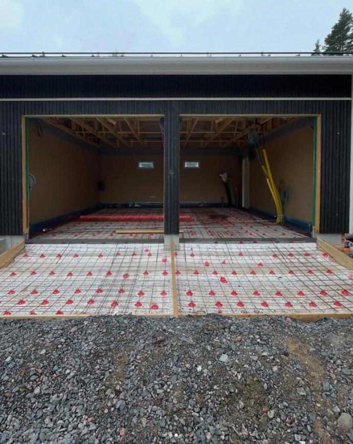 Autotallin lattia valettuna.
